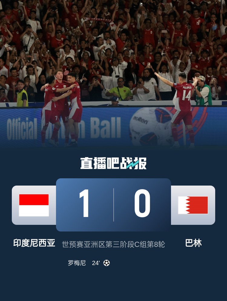 世預(yù)賽亞洲區(qū)第三階段C組第8輪,羅梅尼單刀破門,印度尼西亞1-0巴林。印尼此役后領(lǐng)先國(guó)足3分。