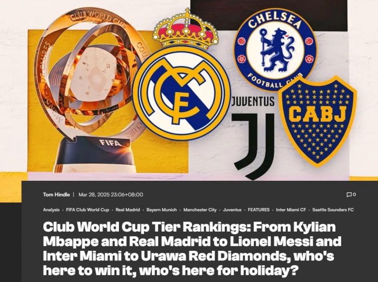 3月29日訊 新世俱杯將于今年夏天在美國舉行,“進球網”為已經確定的31隊進行了“分班”。