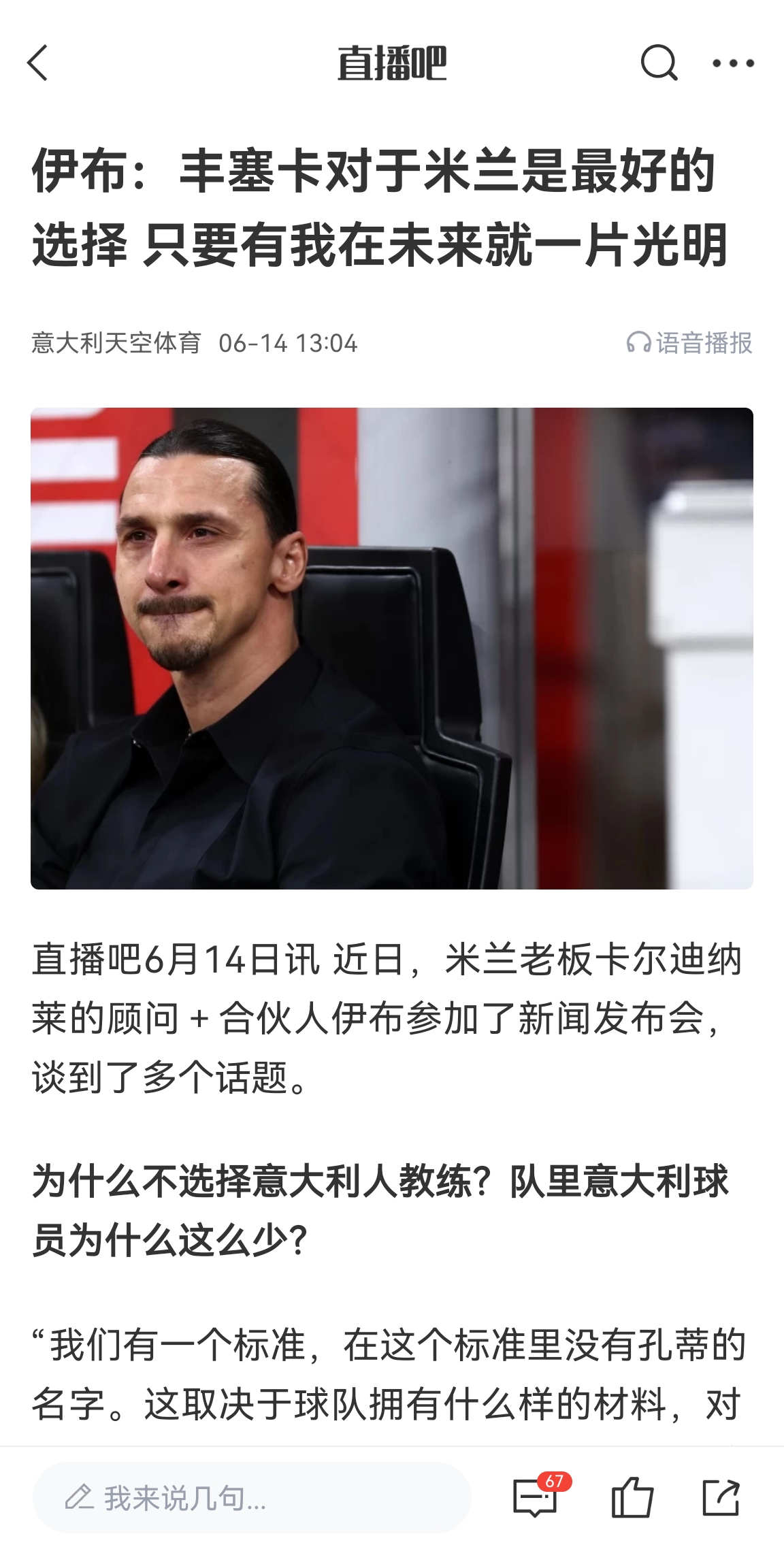 12月30日訊 今年6月14日,米蘭老板卡爾迪納萊的顧問(wèn)+合伙人伊布在采訪中解釋了選擇豐塞卡出任主帥的決定。