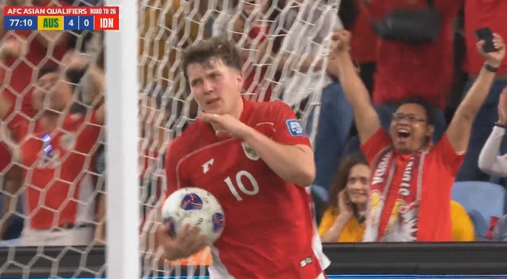 03月20日訊 世預(yù)賽亞洲區(qū)第三階段C組第7輪,澳大利亞vs印尼,比賽第78分鐘,澳大利亞后防失誤,印尼歸化前鋒羅梅尼進(jìn)球,打入印尼國家隊(duì)生涯處子球,并做“割喉”慶祝,印尼仍1-4落后,克魯伊維特場邊不停鼓掌。
