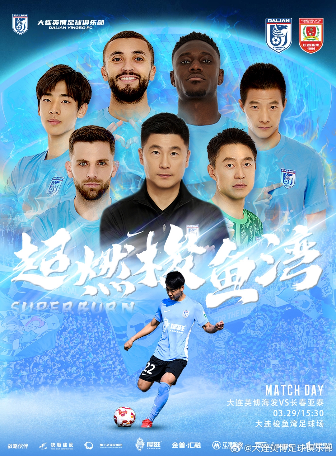 大連英博替補(bǔ):26-黃子豪、5-晉鵬翔、8-趙學(xué)斌、18-劉逸、33-曹海清、22-毛偉杰、23-黃山、28-費(fèi)煜、29-孫鉑、9-閆鵬、15-劉祝潤、39-閻相闖