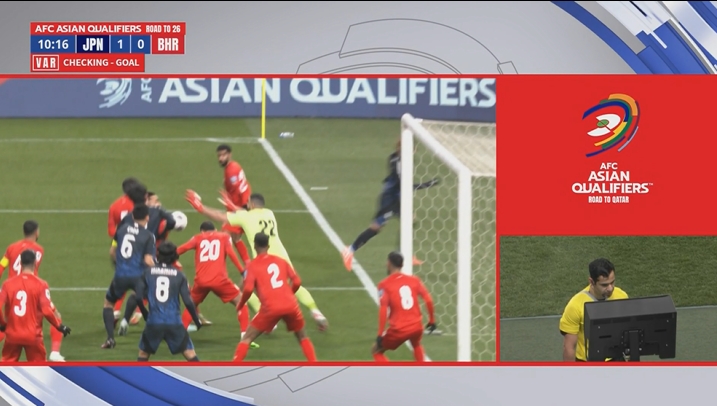 03月20日訊 世預(yù)賽亞洲區(qū)第三階段C組第7輪,日本vs巴林,比賽第9分鐘,日本隊角球開出,遠(yuǎn)藤航亂戰(zhàn)破門,但裁判在場邊觀看VAR后判定上田綺世手球在先,進(jìn)球無效。
