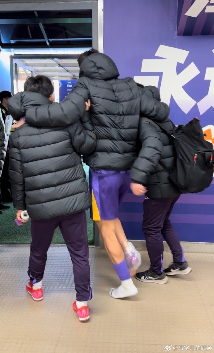 比賽中他去檢查車拍CT時(shí),腳踝已經(jīng)腫了,當(dāng)時(shí)看情形,隊(duì)里最擔(dān)心的是骨折。影像結(jié)果排除了骨折,意味著最壞的結(jié)果沒出現(xiàn),指向比較復(fù)雜的韌帶問題,但是到底有多嚴(yán)重,需要核磁共振進(jìn)一步認(rèn)定,再制定恢復(fù)方案,而拍核磁大概也要等稍微消腫。估計(jì)于指導(dǎo)籠統(tǒng)說“最近幾場(chǎng)無法登場(chǎng)”,也是這個(gè)原因。回到場(chǎng)地后,薩爾瓦多執(zhí)意從擔(dān)架車上下來,要返回球場(chǎng)和隊(duì)友們?cè)谝黄穑ň褪沁@張圖),結(jié)果于指導(dǎo)正好迎面而來,把他攔回休息室了。