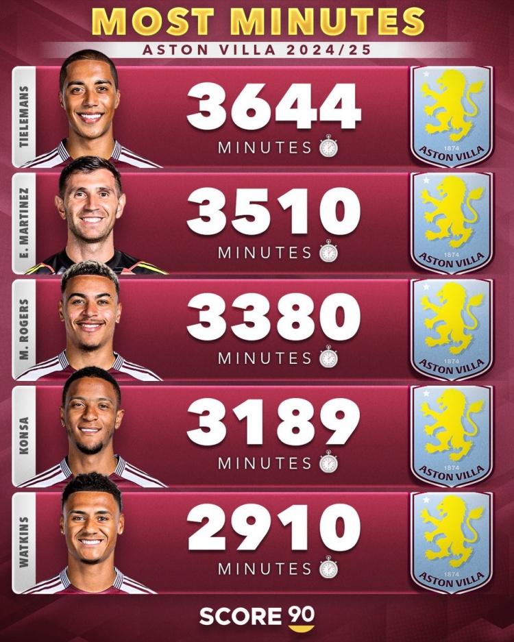 歐冠8強(qiáng)球隊(duì)本賽季出勤排名(所有賽事)