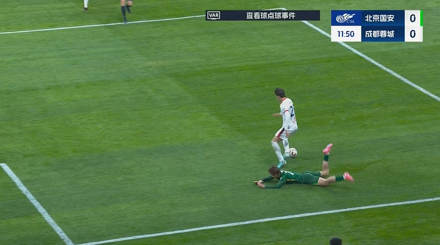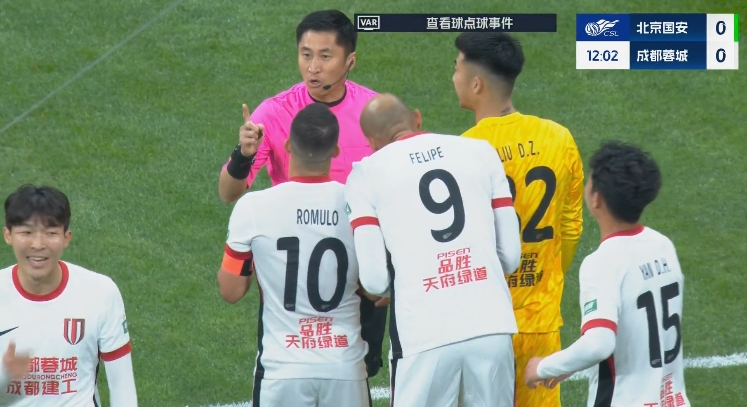 比賽第11分鐘,楊立瑜突破至禁區(qū)內與元敏誠接觸后倒地,馬寧果斷判罰點球!隨后VAR介入,馬寧去場邊查看后維持點球判罰。第18分鐘法比奧點射破門,國安1-0領先蓉城。