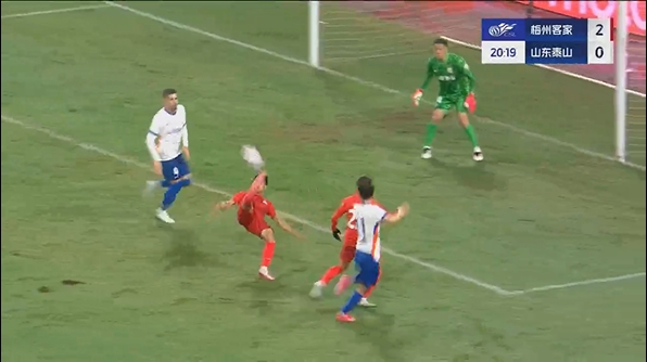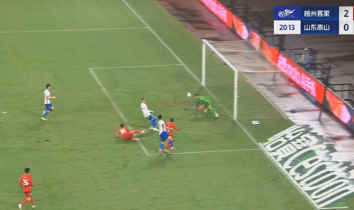 泰山這是干啥呢?梅州3腳射門轟進(jìn)3球,泰山34分鐘被灌3球
