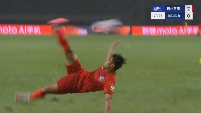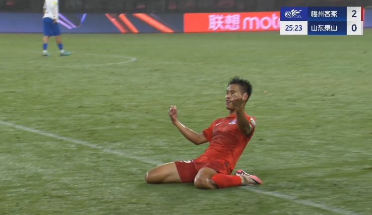泰山20分鐘0-2落后梅州!楊超聲倒鉤破門&2場(chǎng)3球狂奔半場(chǎng)滑跪慶祝