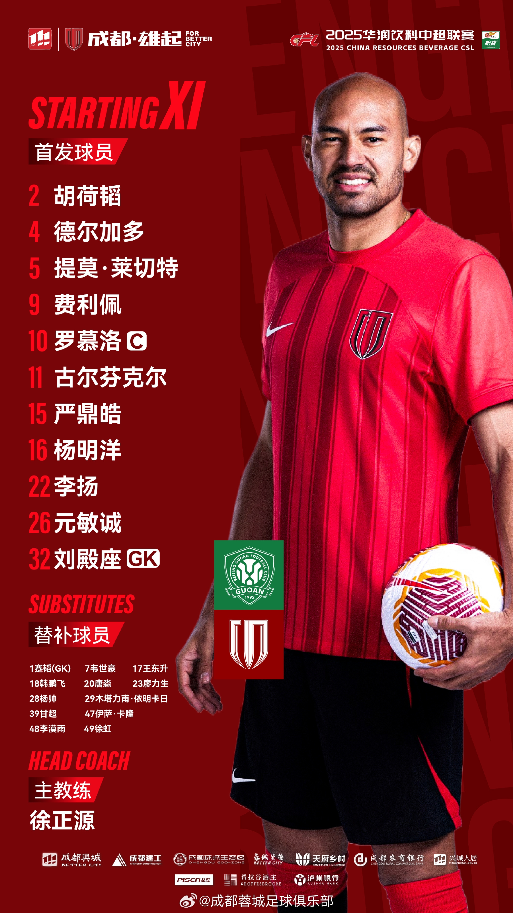 比賽首發(fā)名單出爐!成都,雄起