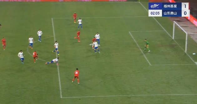 半場(chǎng)-楊超聲精彩倒鉤羅德里格傳射 梅州客家暫3-1山東泰山
