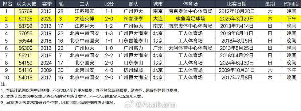 朱藝:今天,本輪(2025賽季中超第3輪)大連英博和長春亞泰的比賽吸引了60126名觀眾現(xiàn)場觀戰(zhàn),這也是大連英博的首個中超主場比賽。這一數(shù)據(jù)在中超歷史上排名第二,僅次于2012年南京奧體的65769人。這也是繼那場之后中超聯(lián)賽第二次有超過六萬名觀眾現(xiàn)場觀賽。