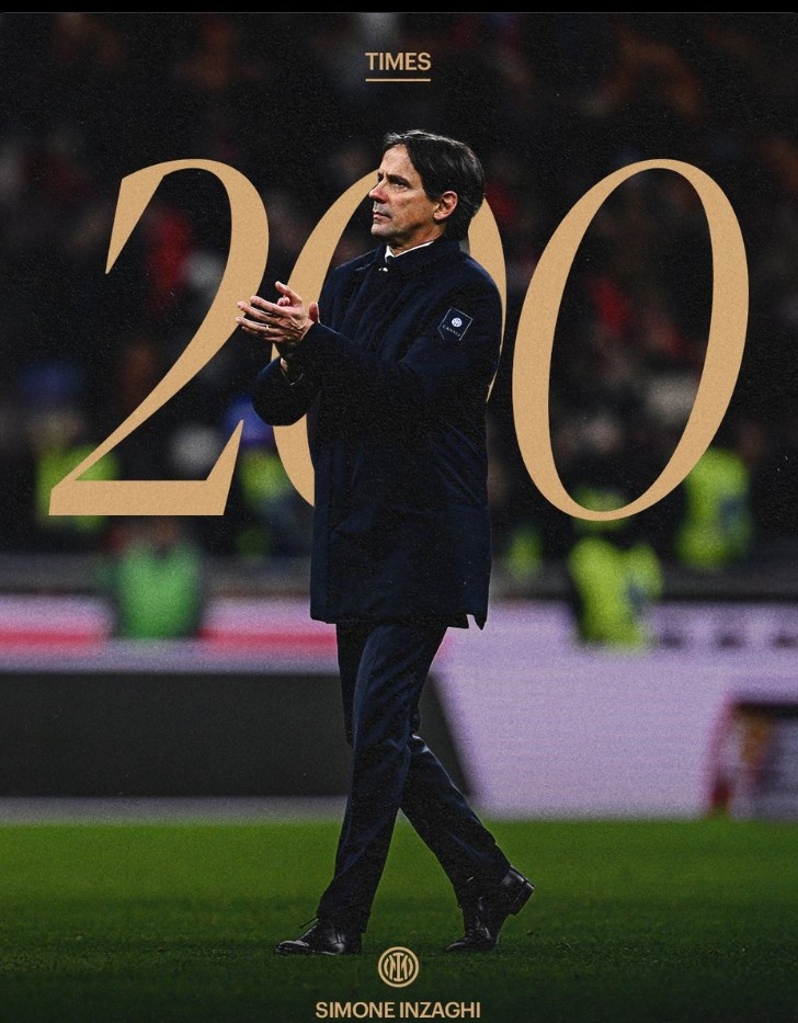本場(chǎng)比賽也是主帥小因扎吉執(zhí)教國米各項(xiàng)賽事第200場(chǎng)里程碑之戰(zhàn),球隊(duì)官方也曬照紀(jì)念。