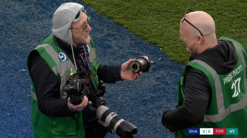 攝影師兩眼一黑布萊頓中場大力爆射踢偏,場邊相機被干碎