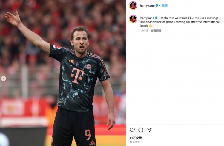 凱恩也在賽后通過社媒曬出比賽照,并表示:“沒有取得我們想要的勝利,但我們會繼續(xù)前進(jìn)。在國家隊比賽周之后,還會有更重量級的比賽等著我們