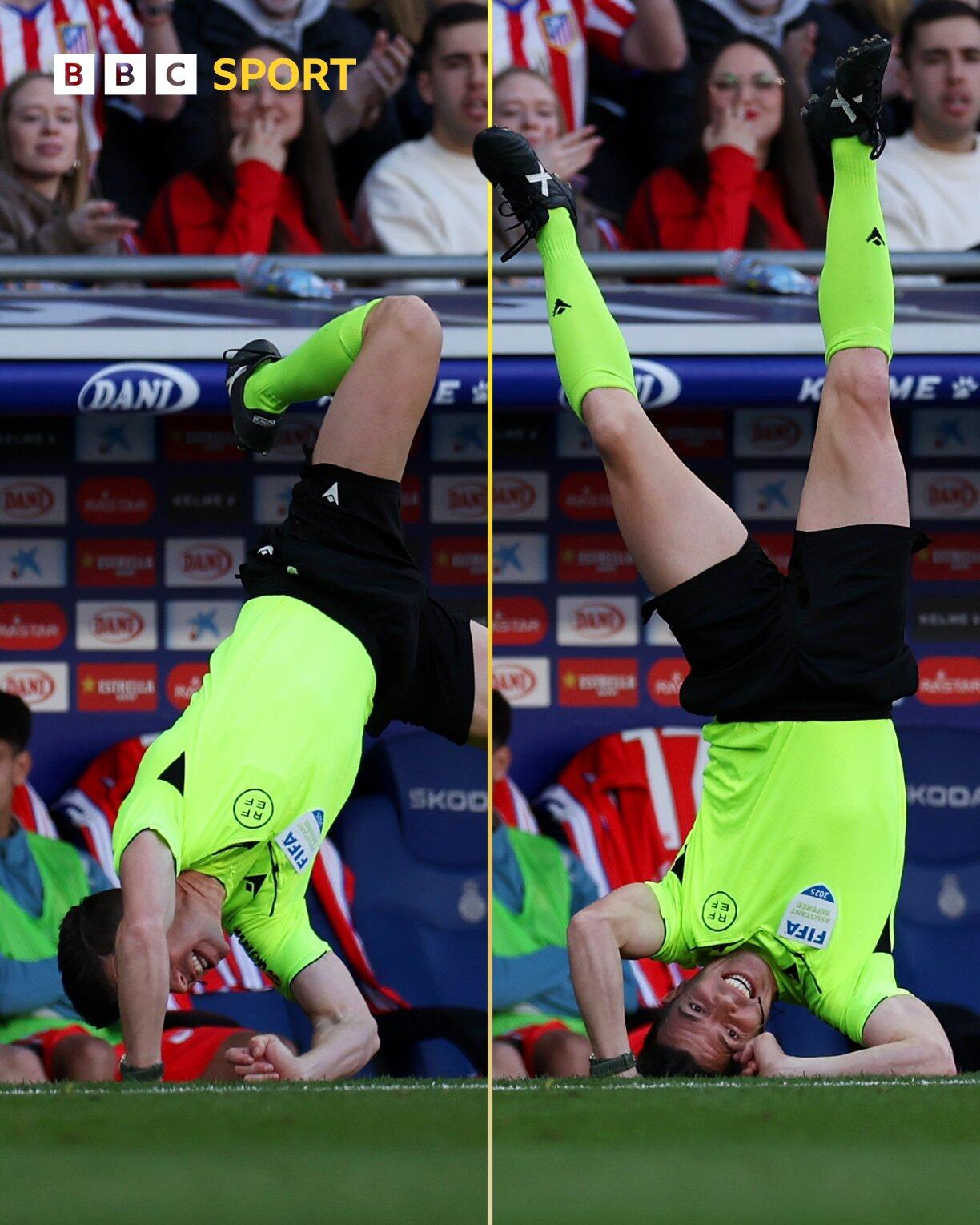 這就是街舞小西蒙尼想邊路超車撞上邊裁,后者摔了個(gè)倒栽蔥