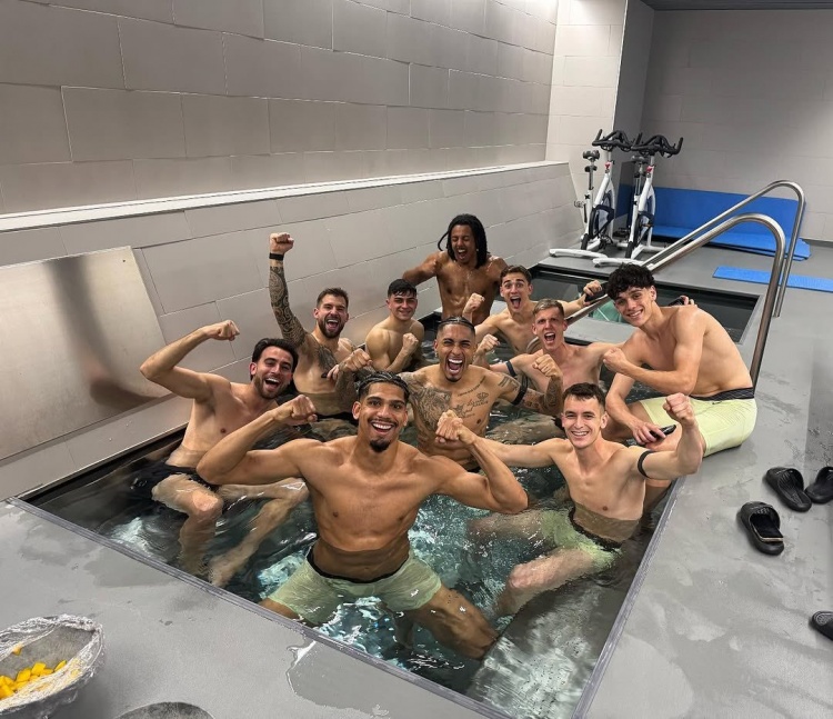 逆轉(zhuǎn)馬競(jìng)!巴薩球員賽后浴池內(nèi)合影慶祝勝利