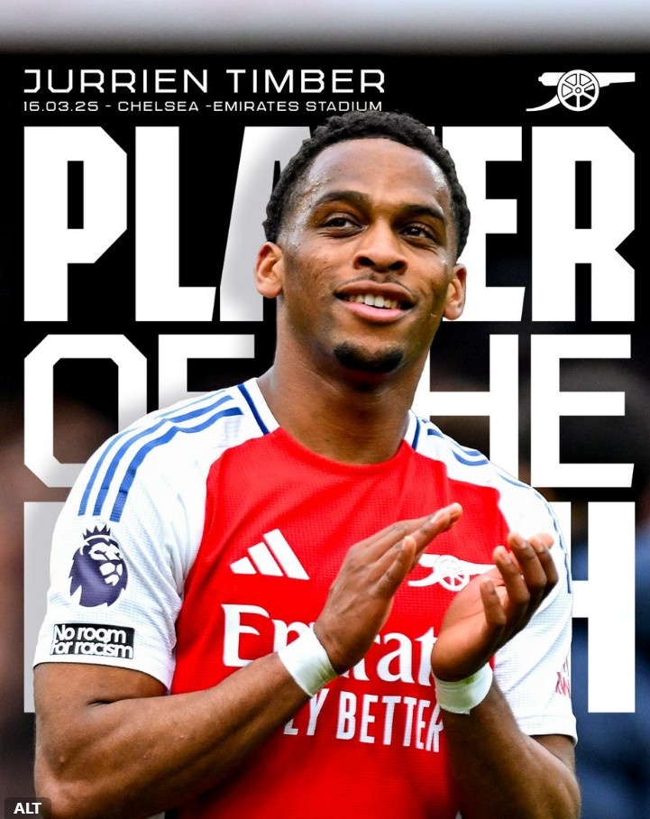 本場比賽廷伯首發(fā)出戰(zhàn)表現(xiàn)出色,9次贏得對抗,6次贏得球權,賽后他也當選阿森納官方評選出的本場隊內(nèi)最佳球員。