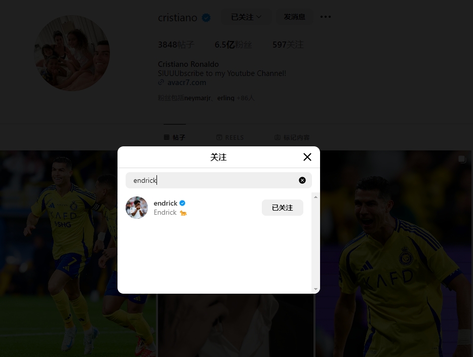 與偶像互關(guān)C羅ins回關(guān)恩德里克