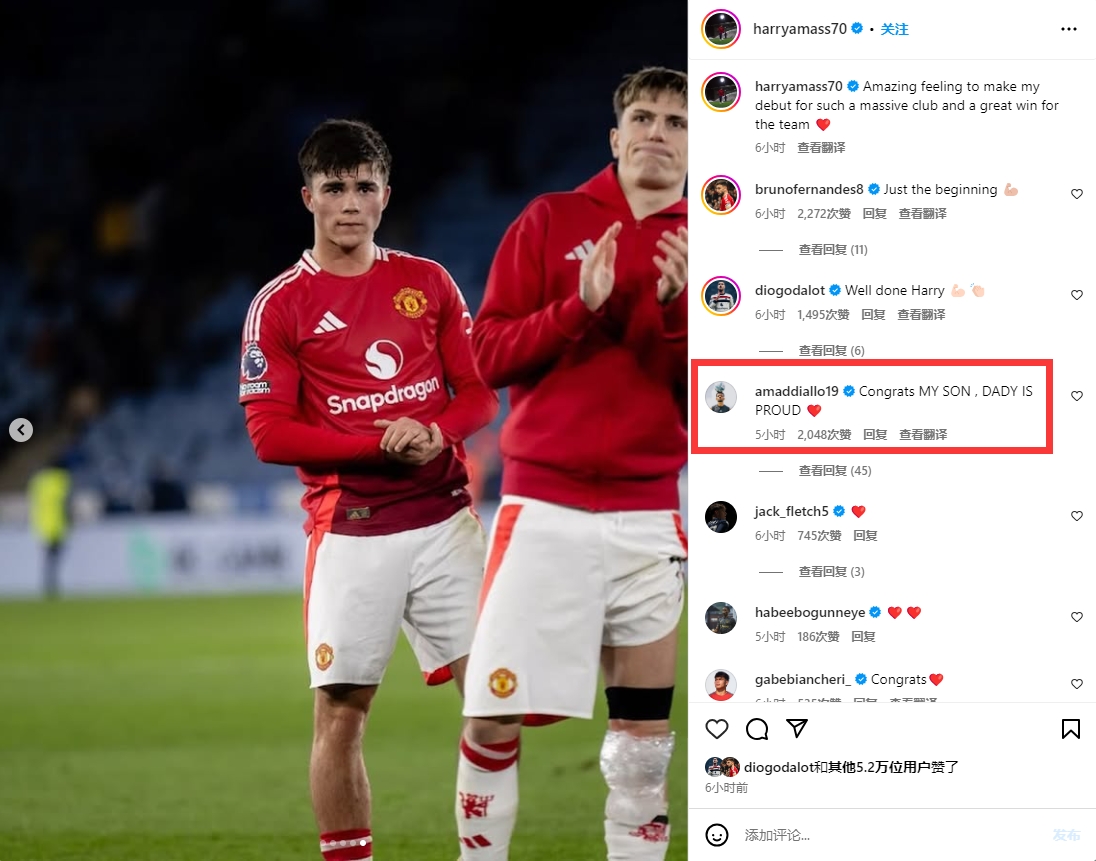 阿瑪斯發(fā)文紀念:“為一家如此大的俱樂部完成首秀并為球隊取得一場美妙的勝利,感覺真棒??”