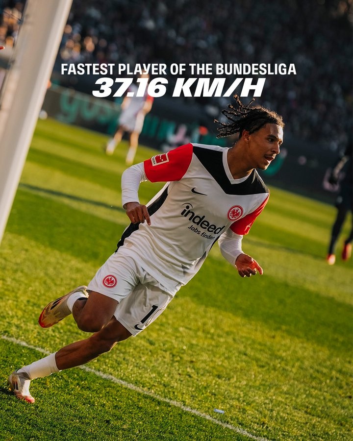 法蘭克福官推賽后曬數(shù)據(jù),他們表示巴霍亞在本場(chǎng)比賽中最高速度達(dá)到了37.16公里/小時(shí),創(chuàng)造了德甲歷史紀(jì)錄。