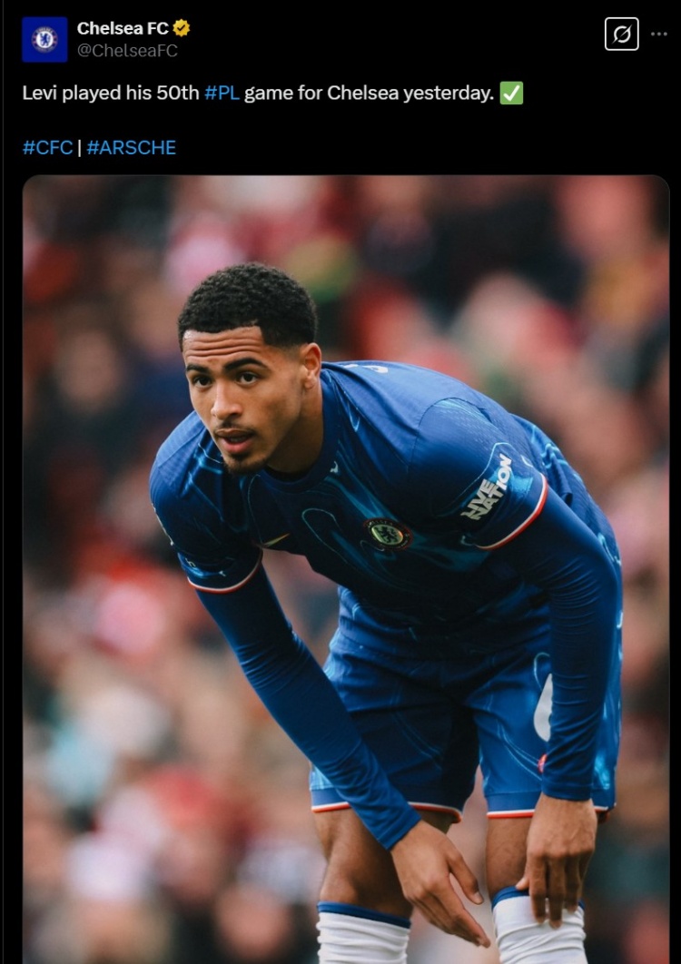 本場比賽科爾維爾首發(fā)出戰(zhàn),這也是他代表切爾西在英超賽場的第50次出場里程碑,球隊官方也曬照為其紀念。