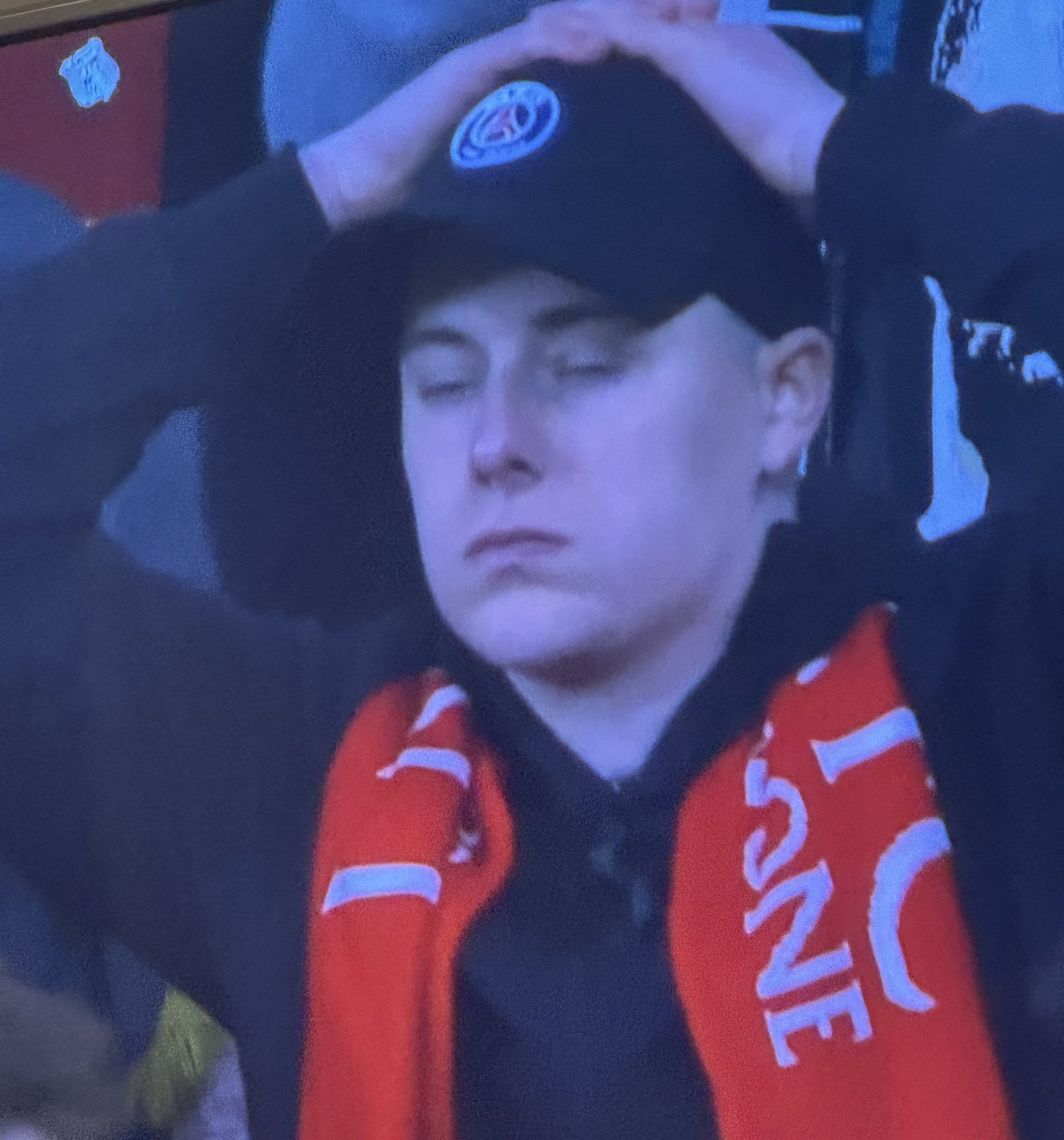 03月17日訊 巴黎官推轉發(fā)了一位球迷的照片,這位球迷披著利物浦圍巾,頭頂卻戴著一頂巴黎的鴨舌帽。