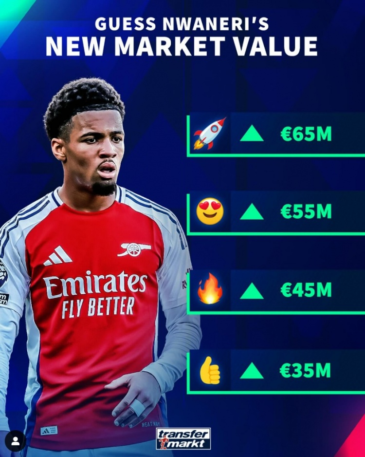 3月17日訊 德轉(zhuǎn)將在明日更新英超球員身價(jià),德轉(zhuǎn)預(yù)熱阿森納小將恩瓦內(nèi)里將是身價(jià)大漲的球員之一。