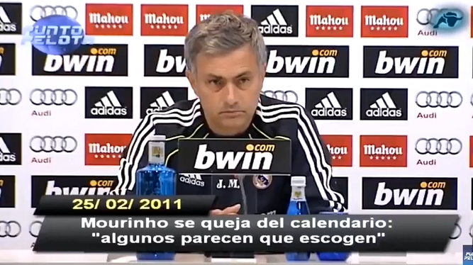 那場沖突的第一次戰(zhàn)斗發(fā)生在2011年2月底,這是穆里尼奧執(zhí)教皇家馬德里的第一個賽季?!斑@是一個由懂得自己在做什么的人制定的賽程。在歐洲比賽后,皇馬最正常的情況是周日比賽。但決定讓我們今天(周六)比賽的人——皇馬周二剛踢完歐冠八分之一決賽首回合對里昂——非常清楚他們在做什么。從聯(lián)賽一開始他們就在這么干。他們在我背后嘲笑我,”穆里尼奧在第25輪聯(lián)賽客場0-0戰(zhàn)平拉科魯尼亞后說道,當時巴薩在積分榜上領先7分。
