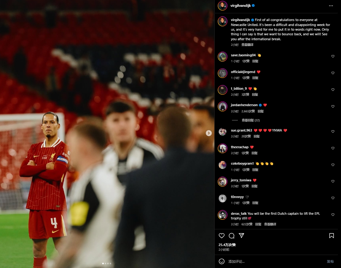 談及失利原因,范戴克分析道:“比賽很艱難。紐卡斯?fàn)柍浞职l(fā)揮了他們的強項——雖然聽起來像陳詞濫調(diào),但他們的對抗強度、犯規(guī)戰(zhàn)術(shù)、定位球設(shè)計都做得很好。我們給了對手信心,讓他們覺得今夜屬于自己。我們的表現(xiàn)確實不夠好,這讓人非常失望和痛苦?!?/p>