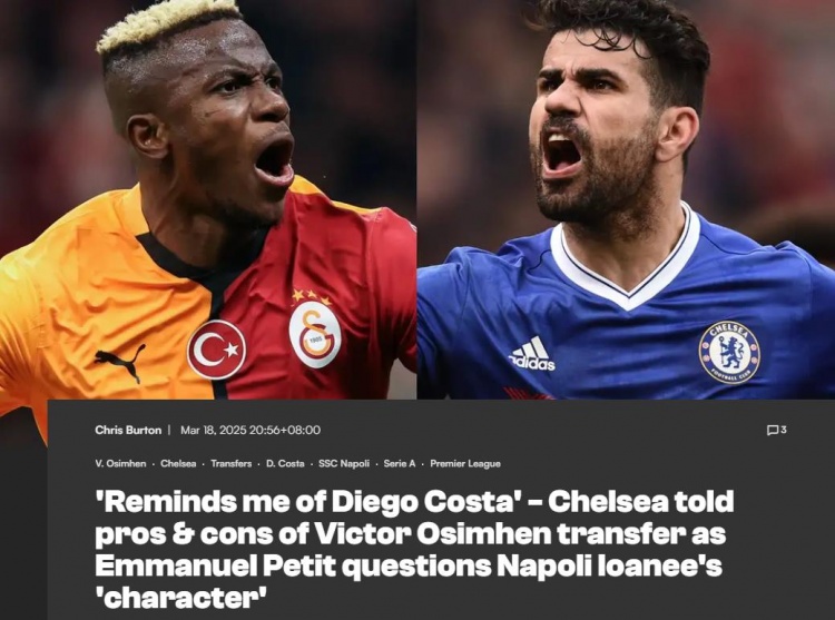 “我們都很清楚奧斯梅恩的能力,以及他能夠為球隊做出的貢獻。他的進球能力和性格都讓我想起了迭戈-科斯塔,他也是一名斗士。奧斯梅恩是一名全能球員,但他的性格也復(fù)雜多樣,今年夏天切爾西也許有很多更好的引援選擇?!?/span>