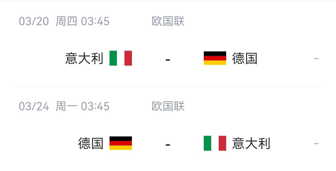 此前的歐國聯(lián)小組,德國隊(duì)力壓荷蘭、匈牙利和波黑以小組第一晉級(jí)淘汰賽,在1/4決賽中,他們要面對的是意大利隊(duì)。德國與意大利將在北京時(shí)間3月20日和3月24日凌晨進(jìn)行兩回合主客場的交鋒。
