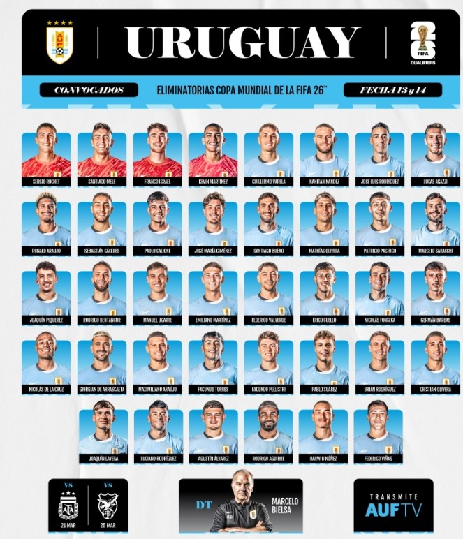 3月19日訊 為了迎接即將到來(lái)的對(duì)陣阿根廷和玻利維亞的比賽,烏拉圭國(guó)家隊(duì)公布了新一期的大名單,努涅斯、烏加特、本坦庫(kù)爾、巴爾韋德入選。