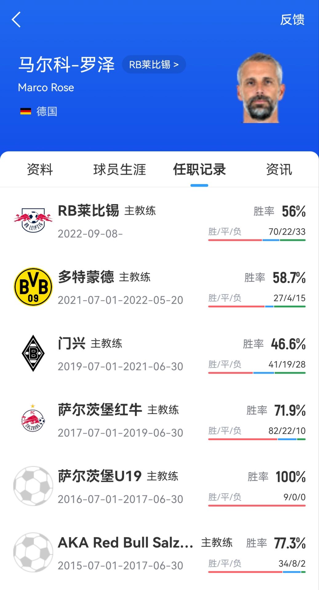 現(xiàn)年48歲的羅澤在2022年9月成為RB萊比錫萊比錫主帥,帶隊?wèi)?zhàn)績127場72勝22平33負(fù)。在羅澤執(zhí)教的第一個賽季,RB萊比錫就拿下了德國杯冠軍,并在2023/24賽季3-0完勝拜仁,拿到了德超杯冠軍。