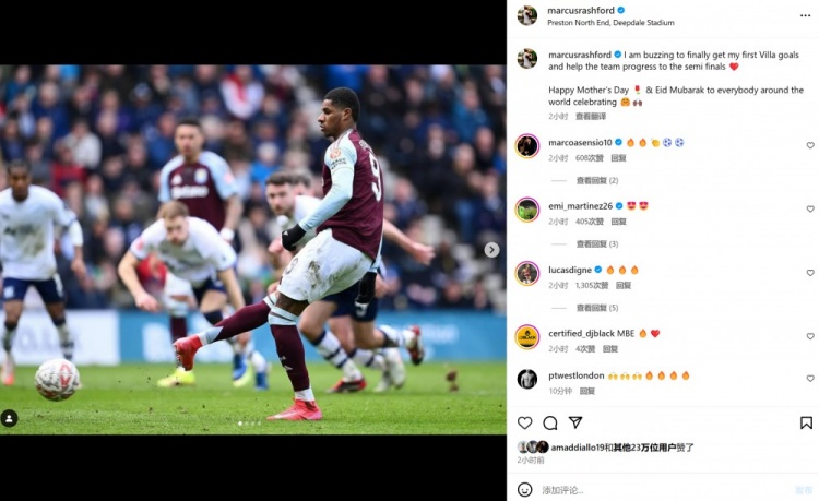 拉什福德賽后也在個(gè)人社媒曬出本場(chǎng)照片,配文寫(xiě)道:“非常激動(dòng)終于收獲在維拉首粒進(jìn)球,并且?guī)椭蜿?duì)晉級(jí)半決賽。祝大家母親節(jié)&開(kāi)齋節(jié)快樂(lè)?!?/p>