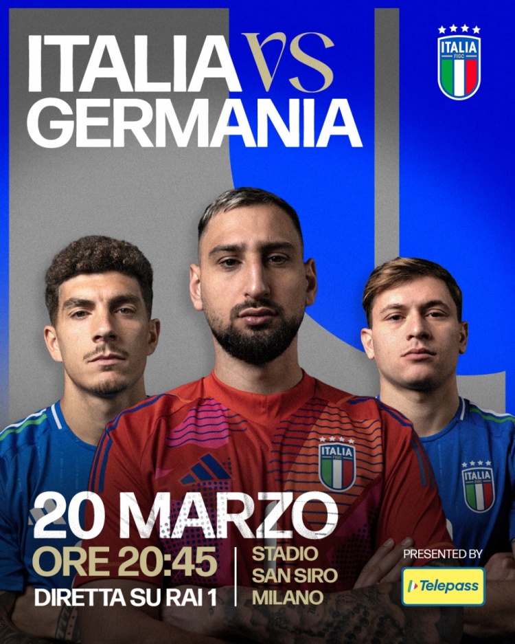 意大利隊(duì)官方社媒曬出了為此役制作的海報,多納魯馬、迪洛倫佐、巴雷拉出鏡,海報上寫有比賽的時間和場地圣西羅球場。
