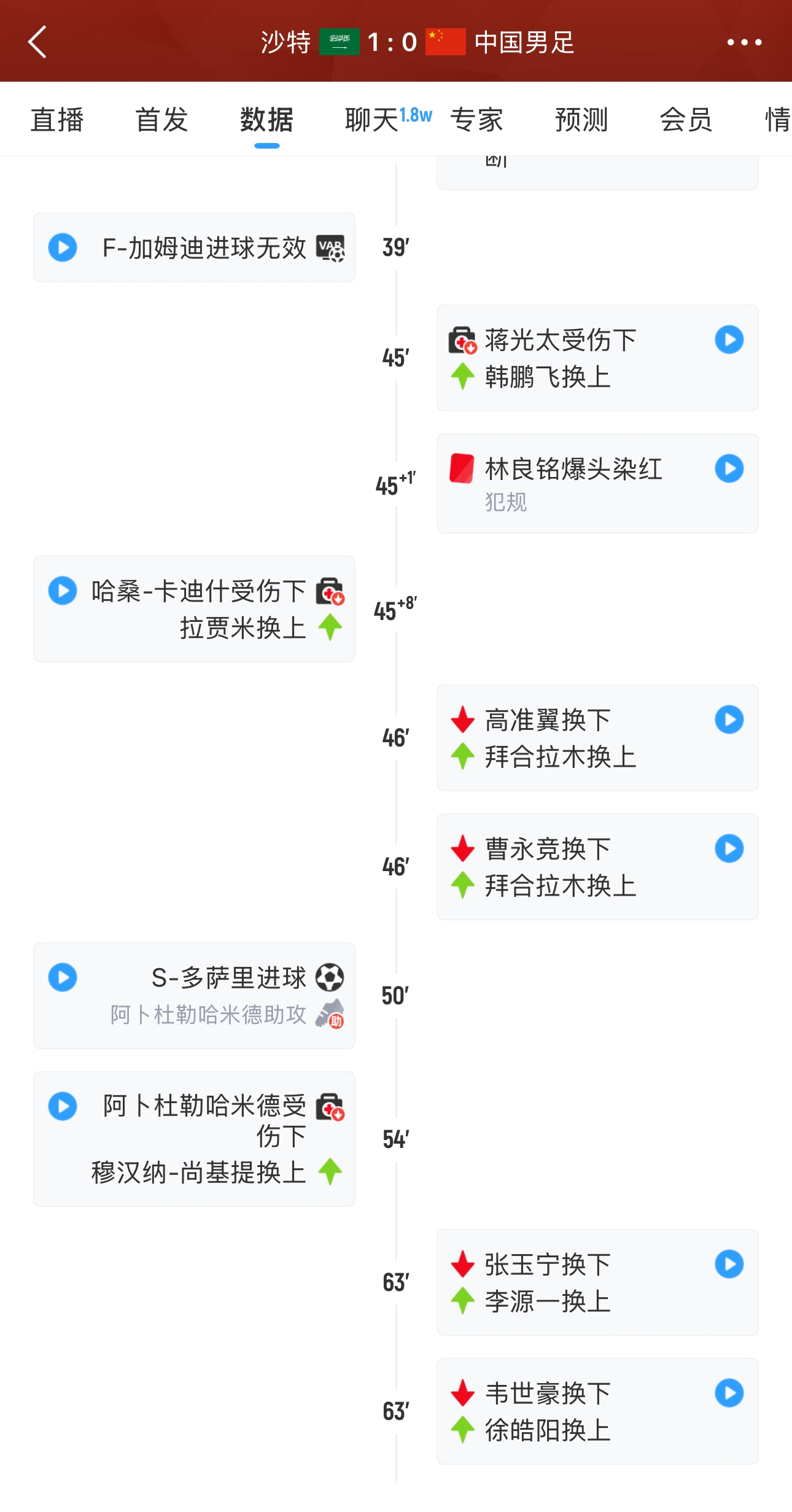 【更新】根據(jù)最新消息,沙特上半場(chǎng)換下卡迪什動(dòng)用了腦震蕩換人名額,因此國(guó)足和沙特都有一個(gè)額外的換人名額,國(guó)足在第90分鐘進(jìn)行了最后一次換人,胡荷韜換下謝文能,塞爾吉尼奧依舊沒能出場(chǎng)!