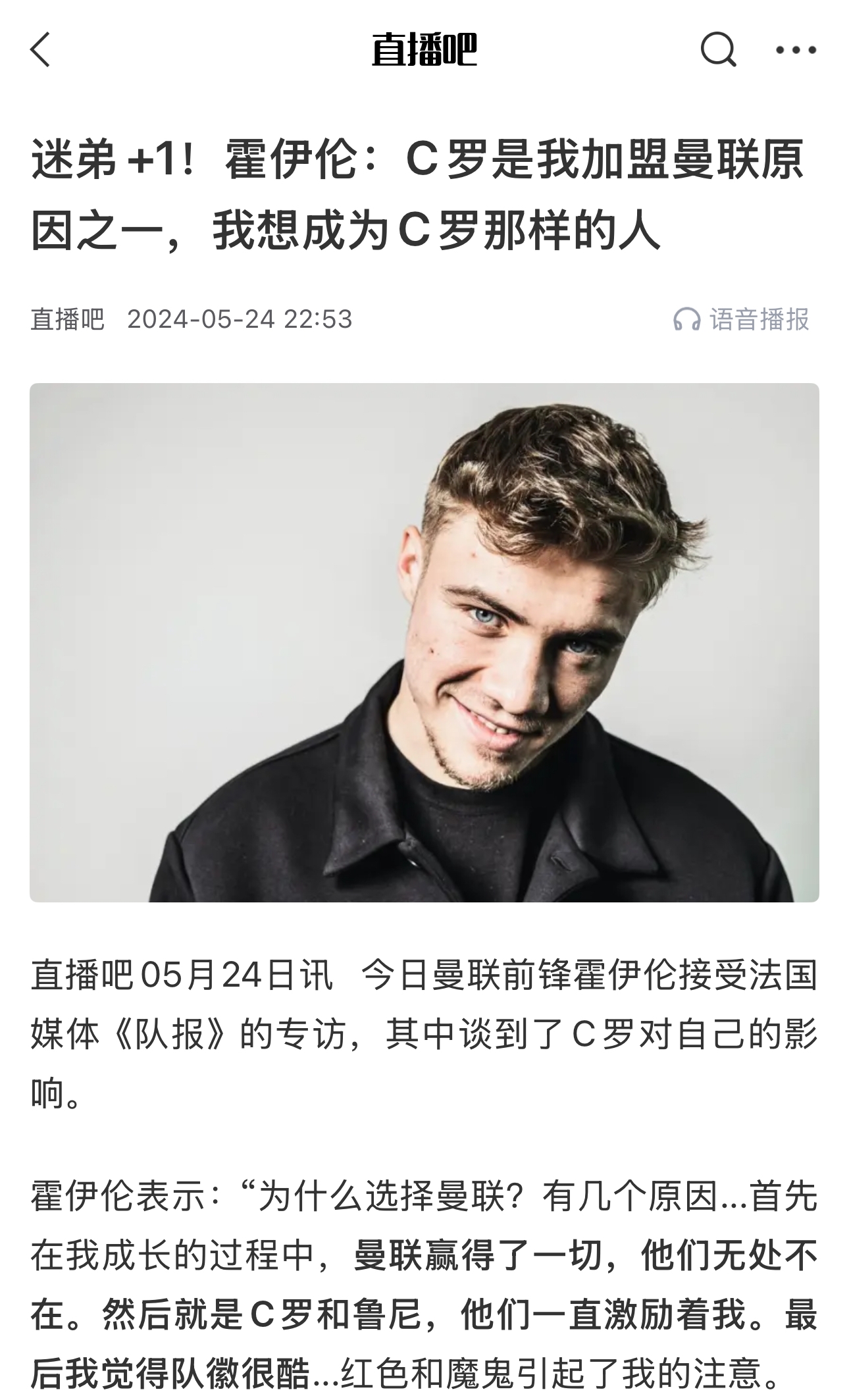 霍伊倫多次表達(dá)C羅是自己的偶像