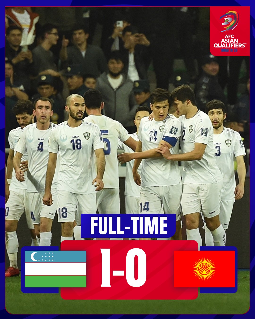 03月21日訊 烏茲別克斯坦1-0擊敗吉爾吉斯斯坦,在18強賽還剩3場的情況下,5勝1平1負積16分排名小組第二,距離隊史首次進世界杯僅一步之遙。